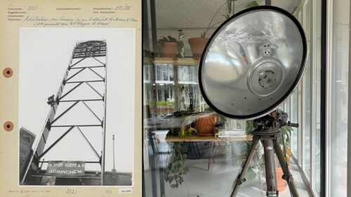 Die inspiratie vinden wij bijvoorbeeld in deze lamp, ook wel bekend van de ‘in de sproglights’ van vorig jaar, waar we zo nu en dan een klant of kennis in lieten shinen. Voor ieder ander is het een grote driepoot met een flinke koplamp erop, maar voor ons een heel speciaal ding. Weinig mensen weten namelijk dat die “flinke koplamp” in een vorig leven onderdeel was van het Olympisch stadion van Amsterdam, waar hij atleten van topniveau in de ‘sproglight’ zette.